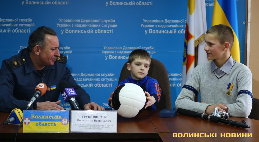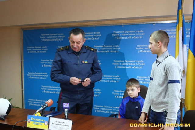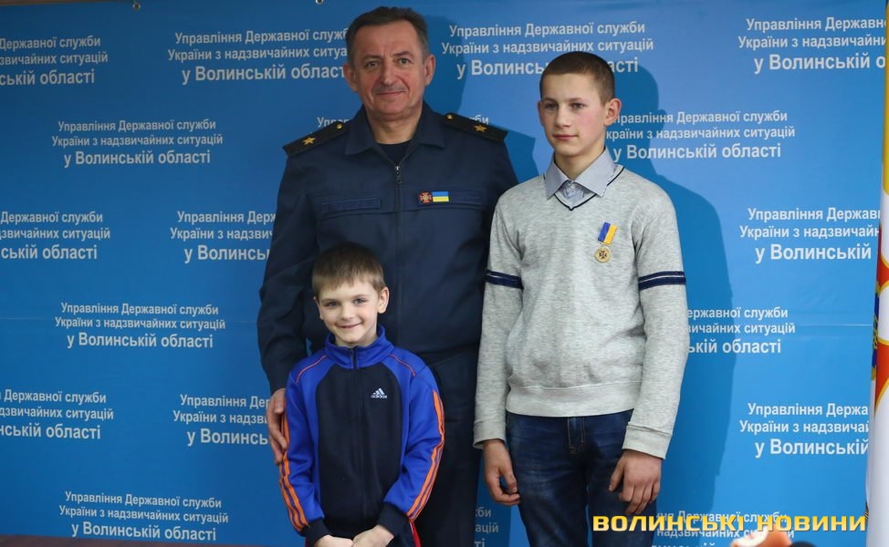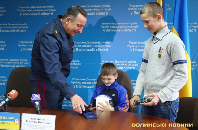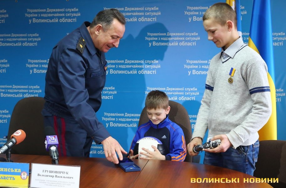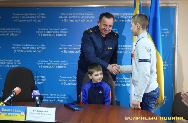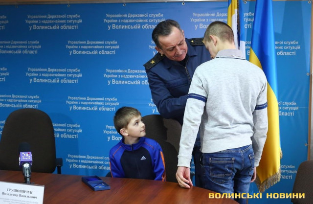 Нагороду юному рятівнику вручив 12 березня керівник управління ДСНС у Волинській області, генерал-майор служби цивільного захисту Володимир Грушовінчук.