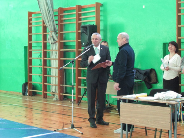 Очільник депутатського корпусу райради, голова партійного осередку районного УКРОПу Михайло Макарук подарував спортшколі борцівський килим. Кошти на його придбання в сумі 100 тисяч гривень були виділені із бюджету області за сприяння фракції «УКРОП» та голови Волинської облради Ігоря Палиці. Крім того, з бюджету Ратнівського району для закладу закупили спортінвентар на суму 25 тисяч гривень та придбали електронне табло за 50 тисяч гривень.