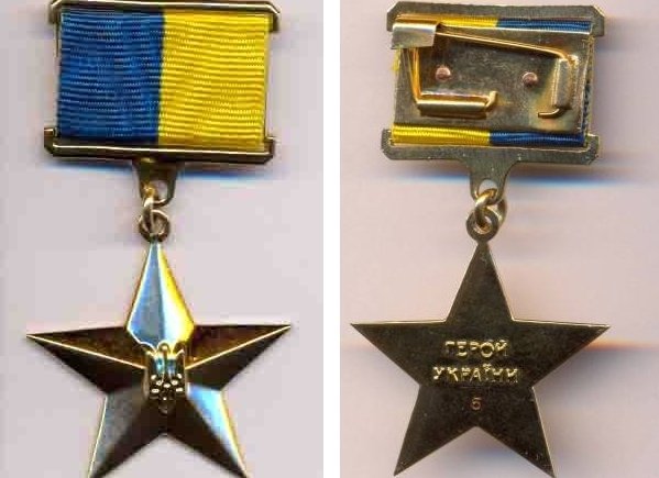 Згідно з указом президента Леоніда Кучми від 2002 року, Герою Eкраїни вручаються орден «Золота Зірка» за здійснення визначного геройського вчинку або орден Держави – за визначні трудові досягнення.
