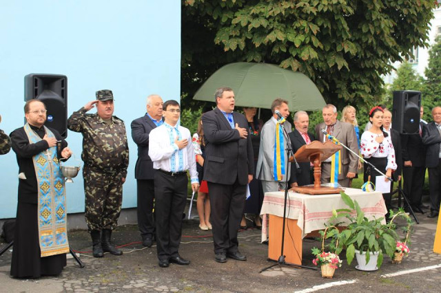 На фото: відкриття меморіальної дошки загиблому випускнику Івану Пасевичу. Фото розмістив на своїй сторінці у Фейсбуці Микола Савельєв, працівник Володимир-Волинського педагогічного коледжу імені А.Ю.Кримського, в якому начався Іван Пасевич.