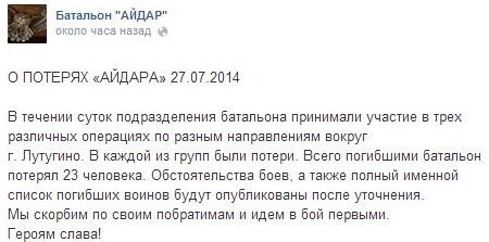 Загинуло 13 бійців батальйону «Айдар». УТОЧНЕНО