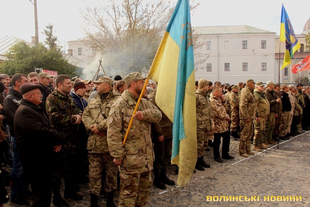 Зокрема, до Луцька приїхали представники козацько-стрілецького братства області, бійці 51 бригади, члени обласної спілки ветеранів Афганістану, бійці 5 батальйону ДУКу, члени громадського формування «Варта порядку», бойовий підрозділ УНСО, розвідрота батальйону «Айдар». Більшість присутніх – волиняни, але приїхали до Луцька і бійці з інших областей. Відтак, на Замковій площі було місце і теплим обіймам поміж побратимами.Розпочалося дійство з хвилини мовчання за полеглих героїв. Під пісню «Пливе кача по Тисині» в пам’ять про загиблих побратимів схилили голови бійці, яких запросили на дійство організатори.