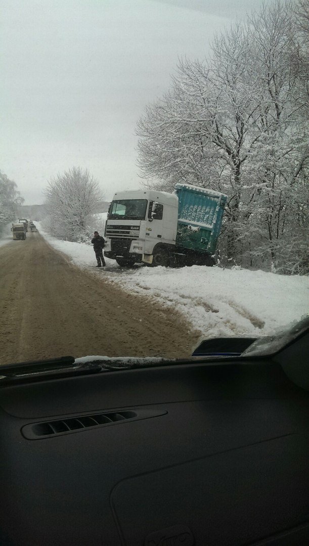 На волинських дорогах розпочалася справжня зима - на трасі Володимир-Волинський-Нововолинськ через нечищені шляхи застрягли два ТІРи, одна фура - у кюветі. Про це в мережі повідомила Орися Вознюк.