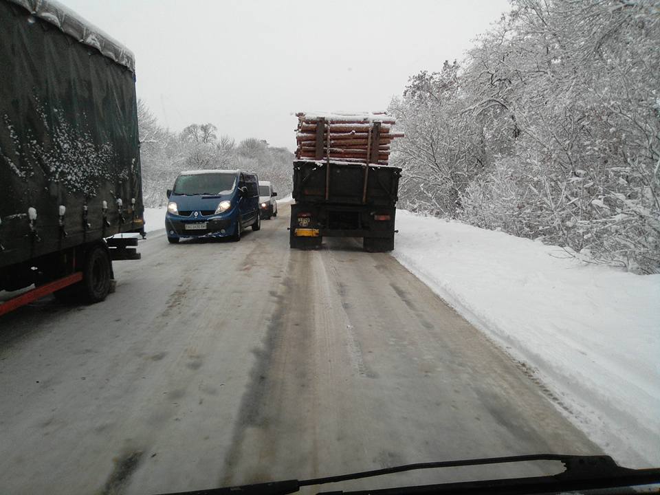 "Трохи волинської зими вам в стрічку. Ось так я сьогодні йшла на роботу. Вже й писати не хочеться, що трасу ніразу не почистили. Два ТІРи застрягли під Суходолами, а одна перевернута в кюветі біля новосільського лісу", - йдеться у повідомленні.