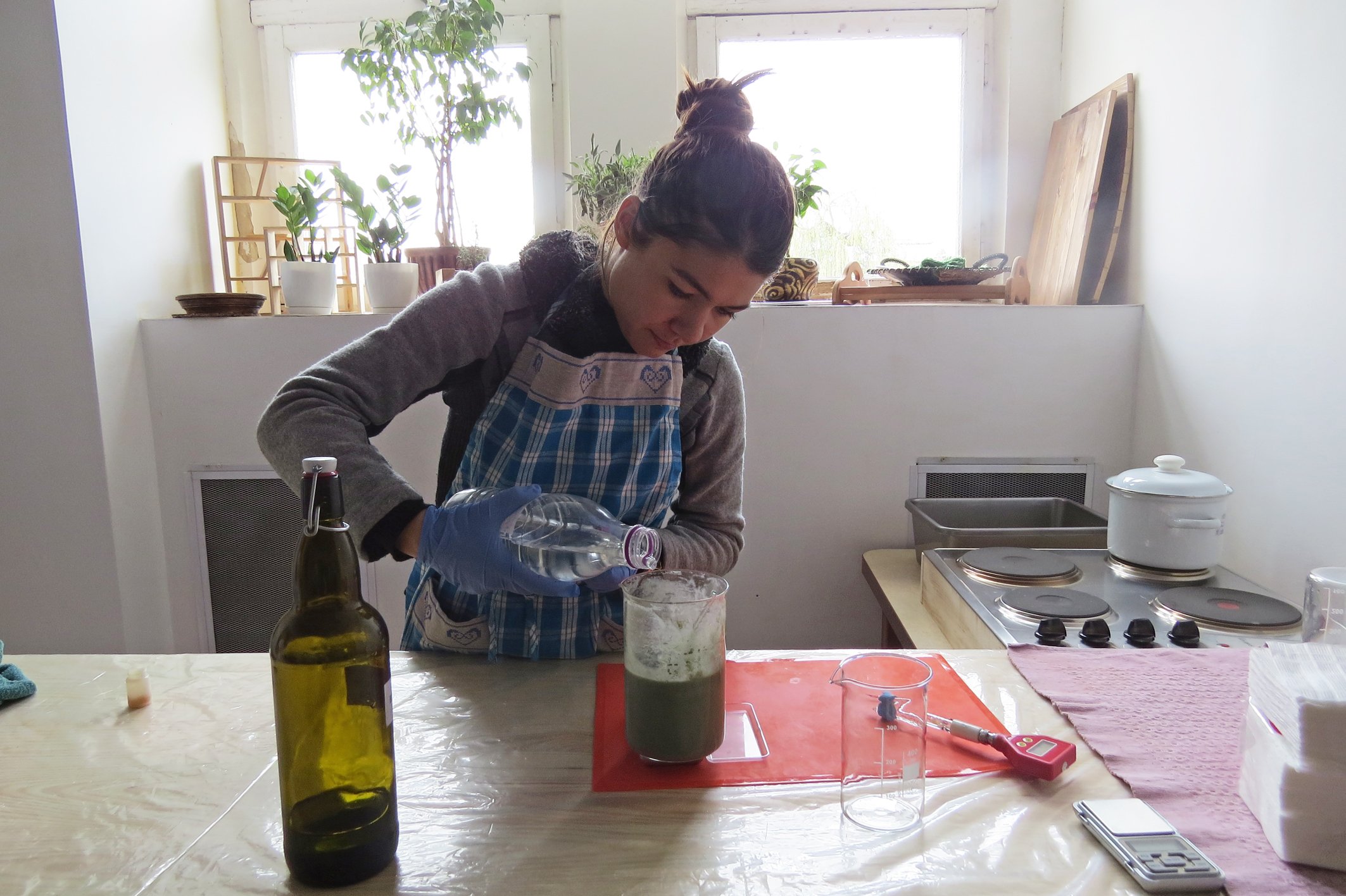 – Обов’язково потрібні плита (бо майже в кожному процесі задіяна водяна баня), багато каструль, відерець, блендер, міксер, дерев’яні форми для мила. А ще – термосклянки, колби, інфрачервоні термометри, кухонні ваги. Весь посуд і техніка мають бути тільки для косметики, – описує роботу Олена. – Мій день починався о п’ятій-шостій ранку й тривав до пізньої ночі. Крім самого приготування засобів, по кілька годин спілкувалася з замовниками телефоном і в соцмережах, оновлювала сторінки, описувала нові продукти, зводила бухгалтерію. Часу катастрофічно бракувало. У вересні звільнилася з університету, хоча ще рік тому планувала захищати кандидатську, бути викладачем. Та домашнє виробництво переросло масштаби хобі. На початку цієї зими всерйоз задумалася про переїзд і взялася за пошуки приміщення.