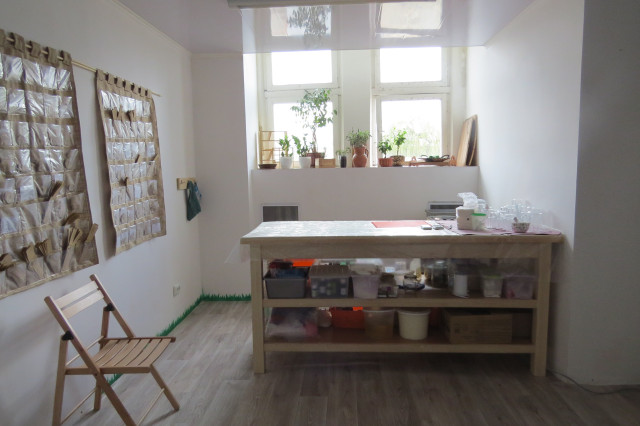 Приміщення складається з двох кімнат: перша – приймальня зі стільцями і столиком, друга – власне майстерня з широким столом, холодильником, плитою та акуратно складеними інструментами й посудом. Кімнати світлі від блискучо-білих стін, на яких Олена з помічницею Оксаною намалювали зелені паростки й деревця. Крім щоденної роботи, тут планують проводити майстер-класи із виготовлення тих засобів, які легко зробити вдома, наприклад, маски для обличчя, волосся, креми на основі соків тощо.