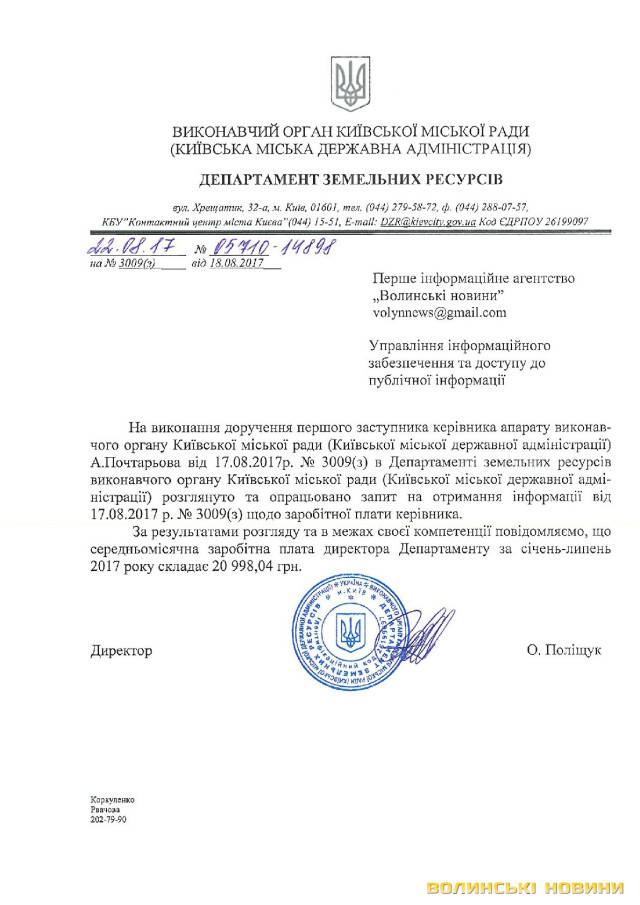 Своєю чергою, керівник департаменту фінансів та бюджету міськради Луцька має в місяць 14 867 гривень, керівник департаменту культури – 14 308 гривень, управління земельних ресурсів – 13 909 гривень, управління містобудування та архітектури – 13 824 гривні, департаменту економічної політики – 13 242 гривні, управління освіти – 11 363 гривні, управління транспорту та зв’язку – 11 351 гривню.
