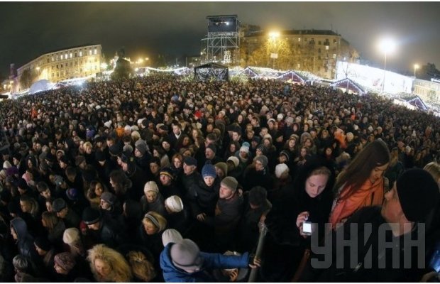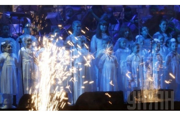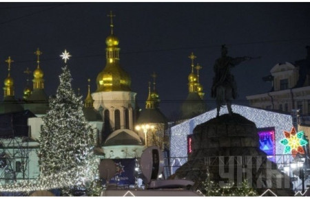 Головну новорічну ялинку країни засвітили у Києві на Софіївській площі, - передає УНІАН.