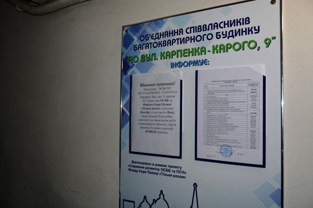 Вартість ремонту одного ліфта від 50 до 180 тисяч гривень. У нас їх п’ять. Ми за свої кошти замінили два блоки управління, редуктор, проводку та на все грошей не вистачало. Тому ми звернулися за допомогою у Фонд Ігоря Палиці «Тільки разом», – розповідає голова ОСББ «Карпенка-Карого 9».