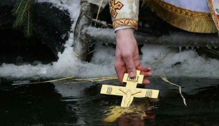 Мужик в платті опустить хреста в ополонку і вода стане святою)))) і скільки ж людей вірить в такий брєд)))