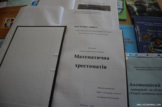 Підручники та посібники, «методички», наукові роботи, які видали та напрацювали освітяни області за останній навчальний рік, представили сьогодні на Вісімнадцятій обласній виставці дидактичних та методичних матеріалів «Творчі сходинки педагогів Волині-2013» у Волинському інституті післядипломної педагогічної освіти. Діятиме виставка протягом двох тижнів у бібліотеці ВІППО.