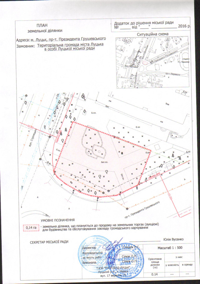 Земельні ділянки по проспекту Грушевського у Луцьку виставлять на торги