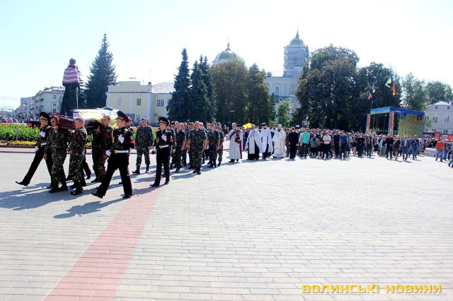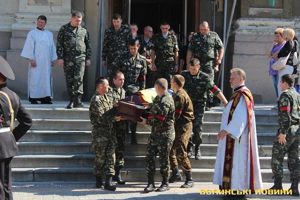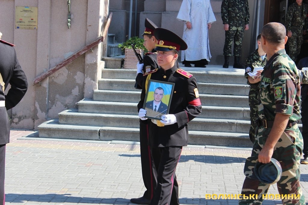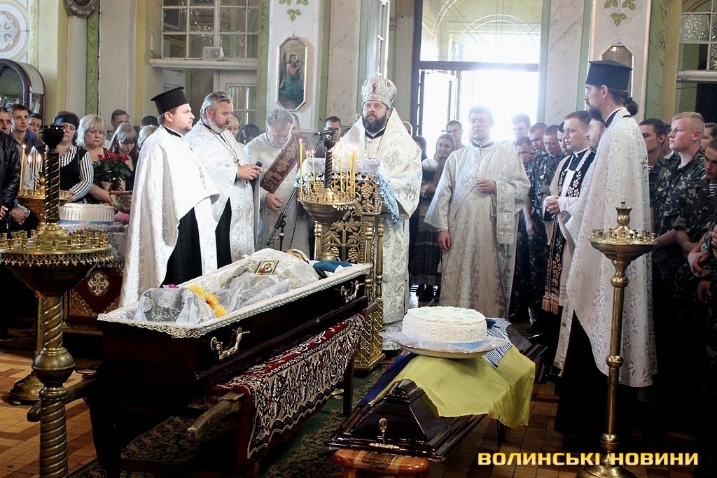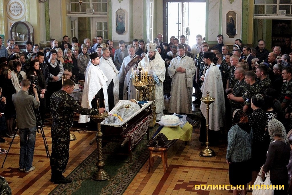 «Cьогодні скорбота знову покрила наше місто, а душа кожного лучанина знову плаче. Так, заупокійне богослужіння та жалобні дзвони покликали нас до храму. Ми ховаємо Героя, молодого хлопця, якому належало переступити церковний поріг і стати на вінчальний рушник. Але він «переступив» цей поріг у труні. Усьому виною – братовбивча віна на Сході. Що ж, північний сусід виявив своє істинне обличчя. Тому молодь, небайдужа до майбутнього держави, вступає до добровольчих батальйонів. Так склалося, що роль чоловіка – захищати. Максим не був одруженим, але він виконав свій чоловічий обов’язок – берегти землю, яка належить його батькам, Батьківщину. Проводжаючи його в останню путь, ми ще раз переконуємось, що Господь обирає кращих для служіння на небесах. Немає нічого вічного, тож усе залежить не від того, скільки ми проживемо на цьому світі, а як. І без війни люди часто помирають у різному віці. Але життям Максима ми будемо пишатися. Дякуємо батькам за сина Героя», - із сумом сказав священник. Опісля на Театральному майдані відбулась громадянська панахида. Так, труну із тілом загиблого принесли до Волинського академічного музично-драматичного театру імені Тараса Шевченка, де власні співчуття рідним воїна висловив Луцький міський голова Микола Романюк: