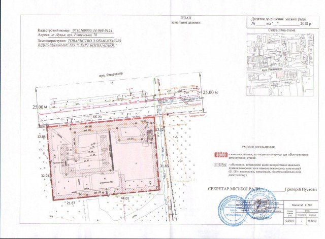 ТОВ «СТАРТ БІЗНЕС-ПЛЮС» на умовах оренди надали земельну ділянку для обслуговування автозаправної станції на вулиці Рівненській, 76.