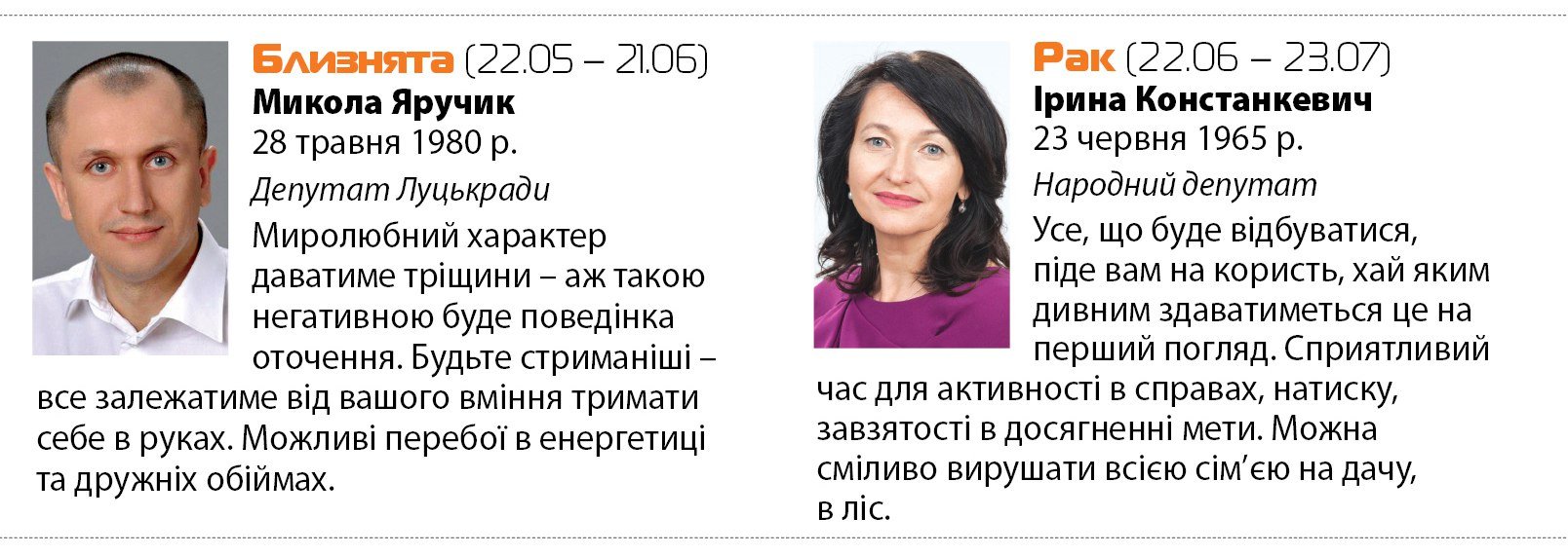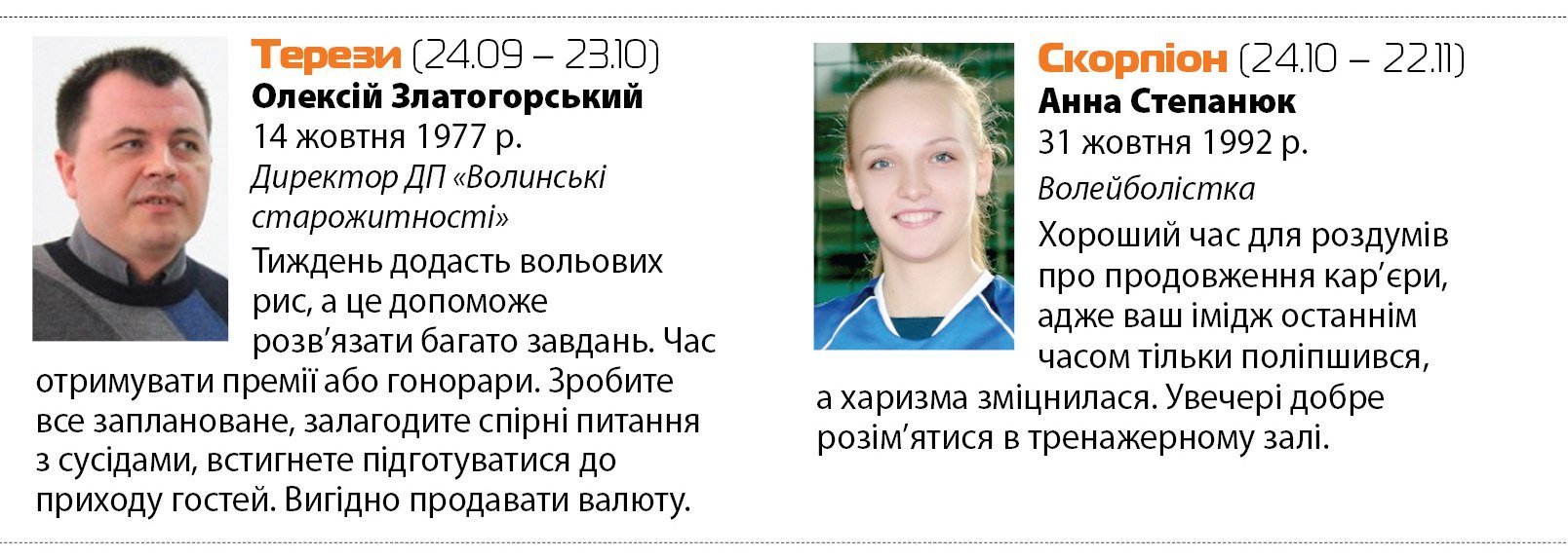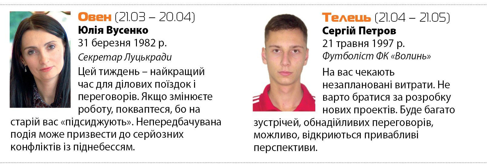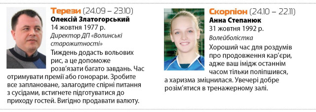 Далі читайте, чого саме очікувати від зірок цього тижня - на прикладі відомих волинян: