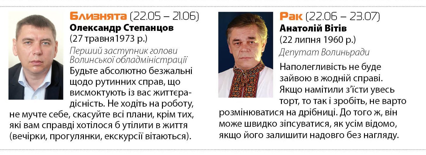Щотижневе видання – газета «Волинські Новини» – пропонує читачам жартівливо-політичний гороскоп. Нагадаємо, 17-й номер нового обласного тижневика побачив світ сьогодні, 26 травня 2016 року.