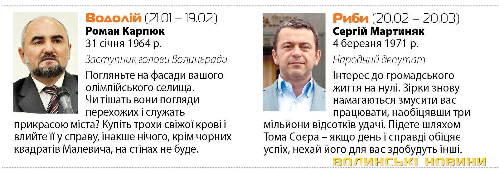 Жартівливо-політичний гороскоп пропонує читачам щотижневик «Волинські Новини».