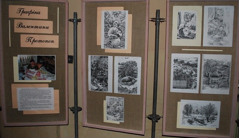 Варто наголосити, що приурочене до Міжнародного дня інвалідів, який світова спільнота відзначає 3 грудня, експонується виставка майстрині народного мистецтва «Графіка Валентини Протопоп». Жінка, мешкає у селищі Іваничі, що на Волині, і з 13-річного віку прикута до ліжка. Однак, попри інвалідність, Валентина Протопоп вишиває, випалює пейзажі на дереві, малює, оскільки хоче бути потрібною людям.