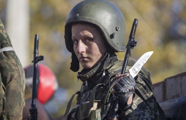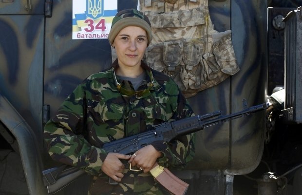 На перших чотирьох знімках – українки, що беруть участь в боях на боці сил АТО, на решті знімків – жінки, що "служать" у лавах бойовиків.