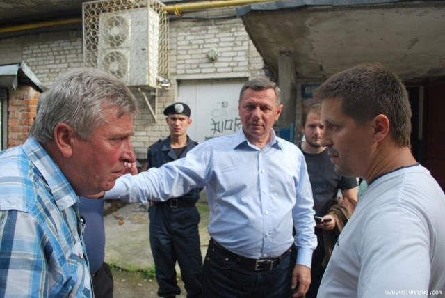 Натомість мешканці почали наполягати, аби хтось з чиновників знову ж таки підписав відповідний документ. Після короткої словесної перепалки, до якої приєдналися мер Микола Романюк, начальник міського департаменту ЖКГ Іван Кубіцький та начальник управління капітального будівництва Луцької міськради Леонід Карабан всі зайшли до під’їзду, аби повторно оглянути квартири.