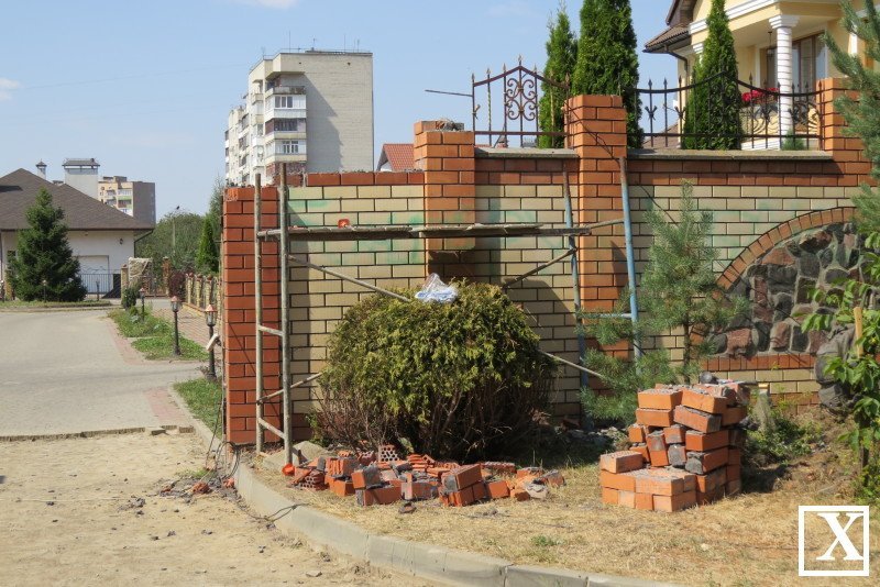 Активісти Волинського об’єднання учасників АТО та волонтерського руху за цей час встигли зрізати металеві ворота, розібрати частину бруківки та цегляної огорожі.