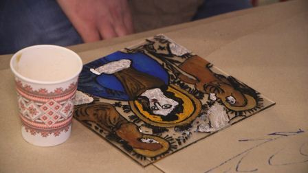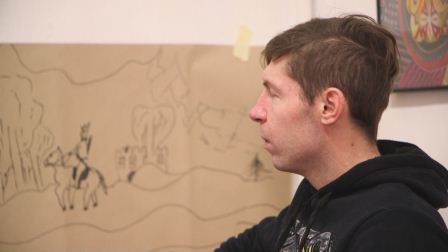 Василь малює образ Божої Матері з ангелами. Каже, що коли знайомий волонтер Денис запросив на заняття з арт-терапії, вагався – чи це йому потрібно. «Але спробував і мені дуже сподобалося, – каже Василь. – Ця терапія дійсно дуже добре заспокоює».Після повернення з АТО молодому чоловікові довелося пройти курс лікування.