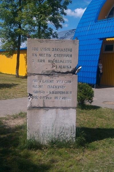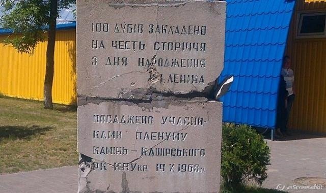 Зі ста дубів, які висадили на честь сторіччя з дня народження Леніна, у Камені-Каширському лишився лише один. Однак «пам’ятна дошка», яка засвідчує цей факт, досі «красується» у місті. Мешканці протестують, - йдеться на Вістях Каменя.