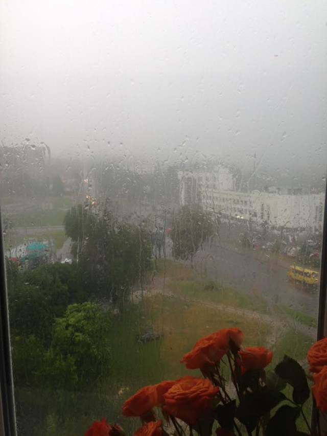 Приблизно годину тому у Луцьку розпочалася злива. Напередодні синоптики попереджали, що дощі з грозами розпочалися відучора і триватимуть орієнтовно до середи.