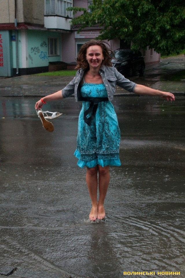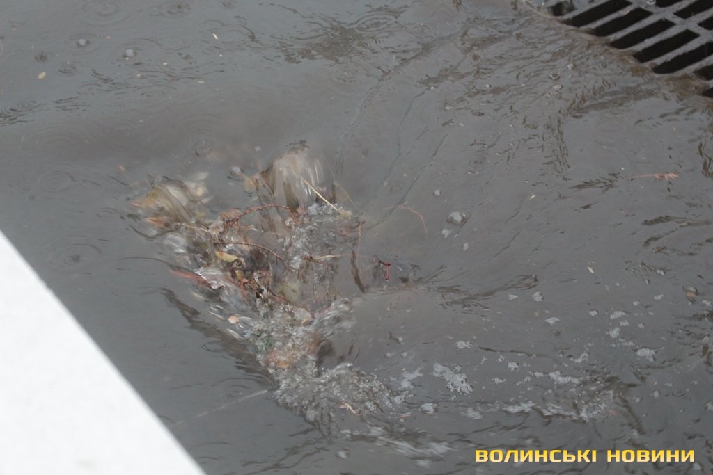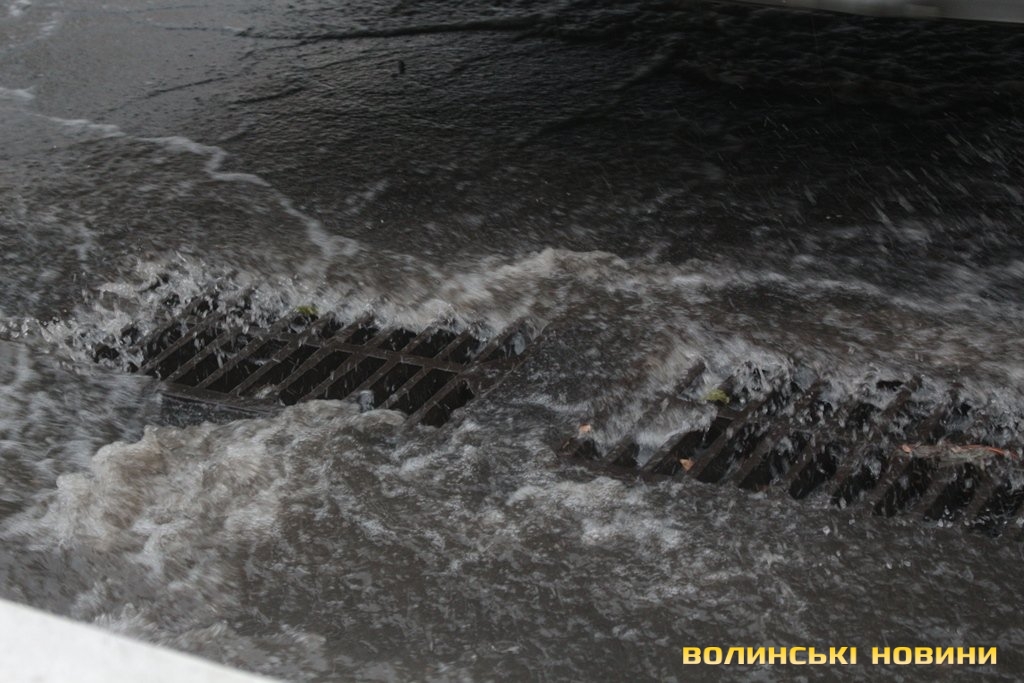 Приблизно годину тому у Луцьку розпочалася злива. Напередодні синоптики попереджали, що дощі з грозами розпочалися відучора і триватимуть орієнтовно до середи.