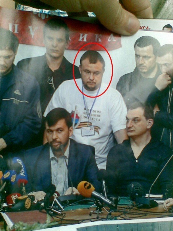 Чоловік продемонстрував фото, на якому людина, яка його катувала, стоїть поряд із лідером сепаратистів Денисом Пушиліним. Сергій Шаповал повідомив, що протягом перебування у приміщенні Донецької облдержадміністрації, його били шокером, поклавши мокру ганчірку на праве плече та заламавши праву руку.