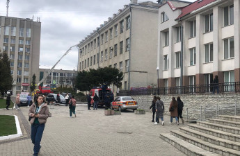 Дим з вікна, дві пожежні машини, швидка та поліція: у корпусах Волинського національного університету відпрацьовували дії під час пожежі.