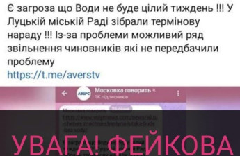 Сьогодні мережею шириться фейковий інформаційний вкид щодо відсутності води у Луцьку протягом тижня.