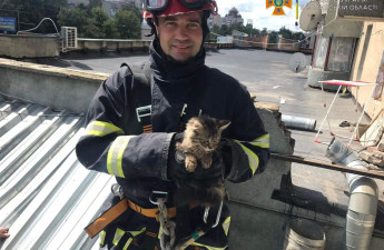 У Луцьку з вентиляційної шахти визволили кошеня. Рятувальників викликали небайдужі