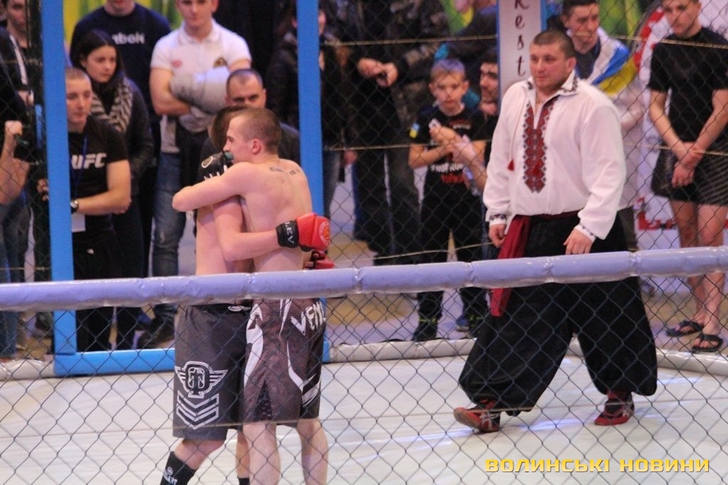 Нагадаємо, що Луцьк прийняв міжнародний турнір козацького двобою з боями у клітках 19-го лютого ТРЦ "ПортCity". Фінальні сутички у клітці відбулися вечірньої пори.Переможці розподілили призові місця у вагових категоріях так:Вікова група 16-18 років (гала-фінали) розділ-Борня 3 ММА: до 60 кг І - Тарасюк Богдан (ВОСК "Магістр" м. Луцьк) ІІ - Корука Павло (СК "Воїн" м. Луцьк) до 65 І - Толосюк Влад (ВРКБМ "Прайд" м. Луцьк) ІІ - Комарецький Влад (ВРКБМ "Прайд" м. Луцьк) до 70 І - Козлюк Віктор (ВРКБМ "Прайд" м. Луцьк) ІІ - Потапов Максим ("Патріот" м. Березне) до 75 І - Бондар Іван (СК "Пітбуль" м. Луцьк) ІІ - Толошко Антон (СК "Бусідо" м. Брест, Білорусь) понад 75 І - Федорлевський Олексій (СК "Воїн" м. Луцьк) ІІ - Капран Іван (СК "Берсерк" м. Сарни).