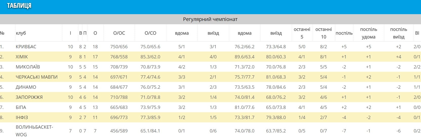 У турнірній таблиці з нулем у графі перемог «Волиньбаскет» займає останнє місце. «Черкаські мавпи» після дев’яти зіграних матчів йдуть четвертими з 14 очками в своєму активі.