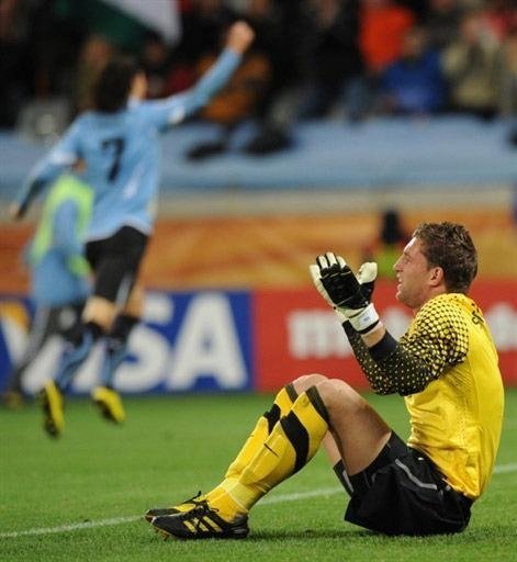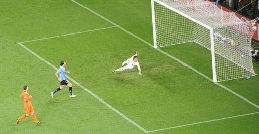 Голландці відкрили рахунок на 18-й хвилині гри з Уругваєм - досяг мети дальній удар капітана збірної Нідерландів Джованні ван Бронкхорста. Відігралися південноамериканці в кінцівці першого тайму: з далеким ударом Дієго Форлана не впорався голландський воротар Мартен Стекеленбург.