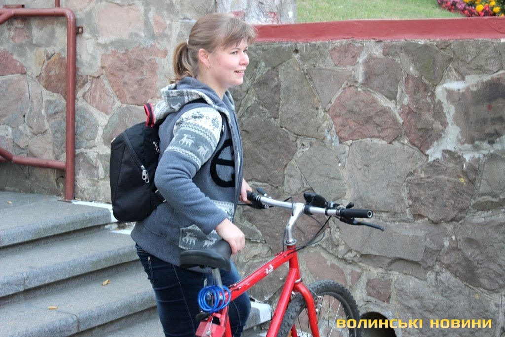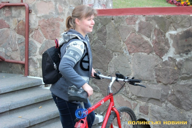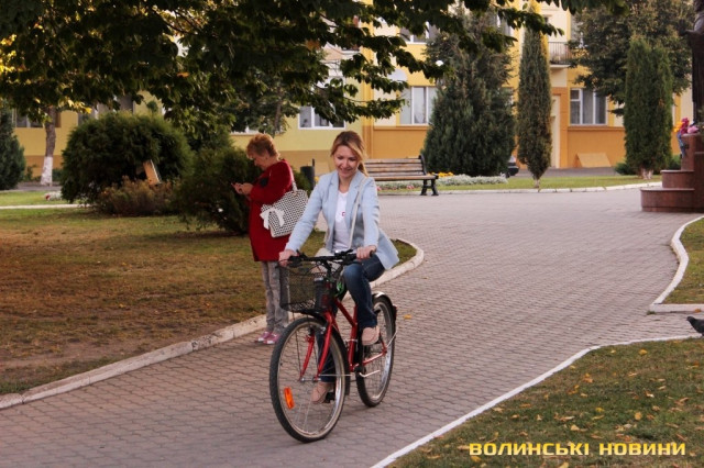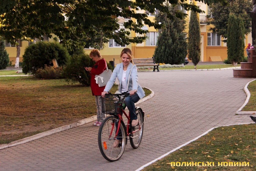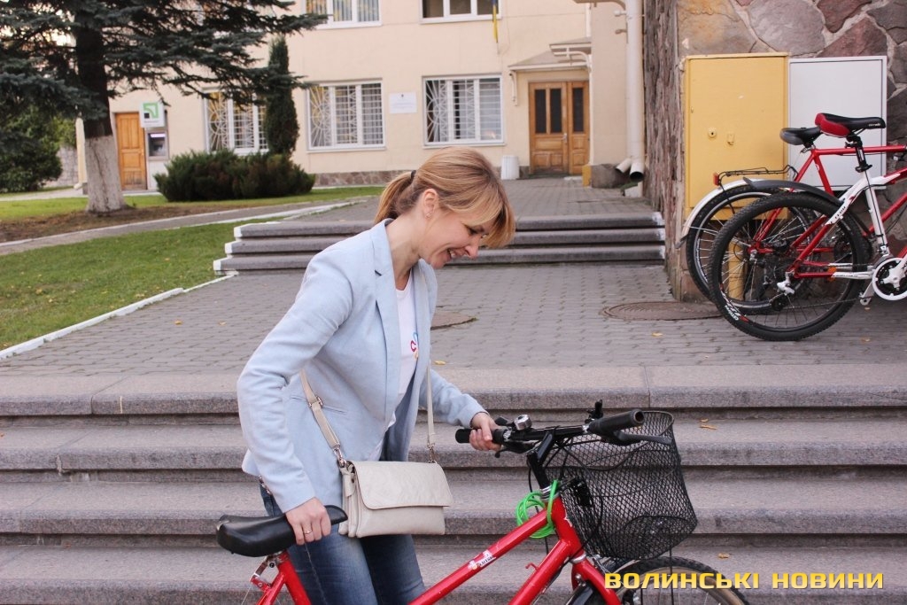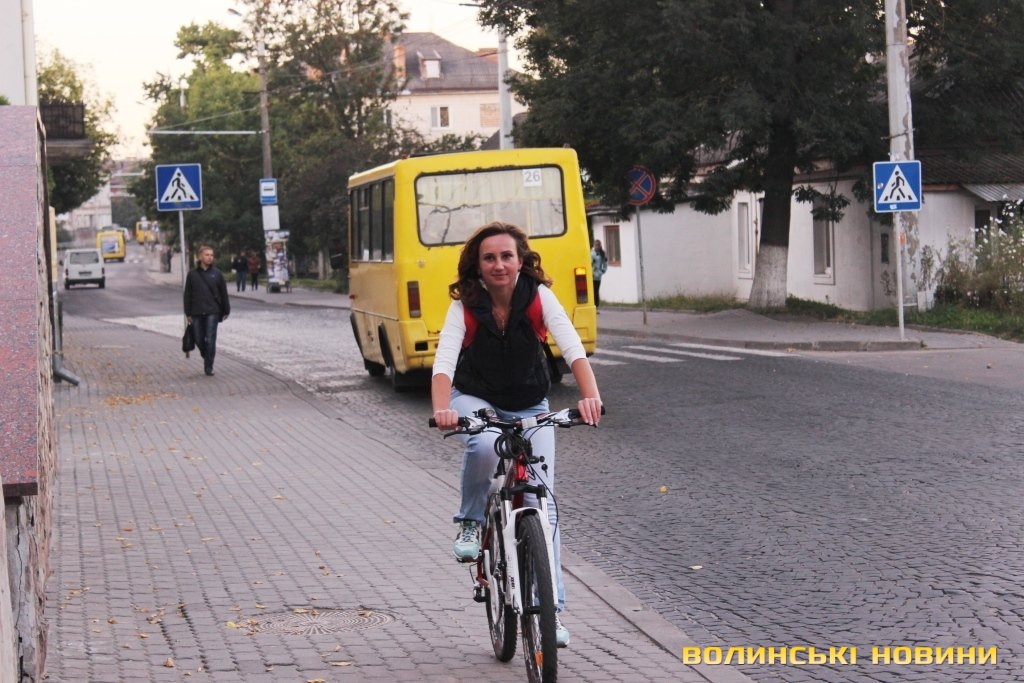 Також двоколісного друга обрала для поїздки на роботу начальник відділу розвитку туризму управління туризму та промоції міста Катерина Теліпська, яка, однак, не надто впевнено почувала себе на велосипеді.