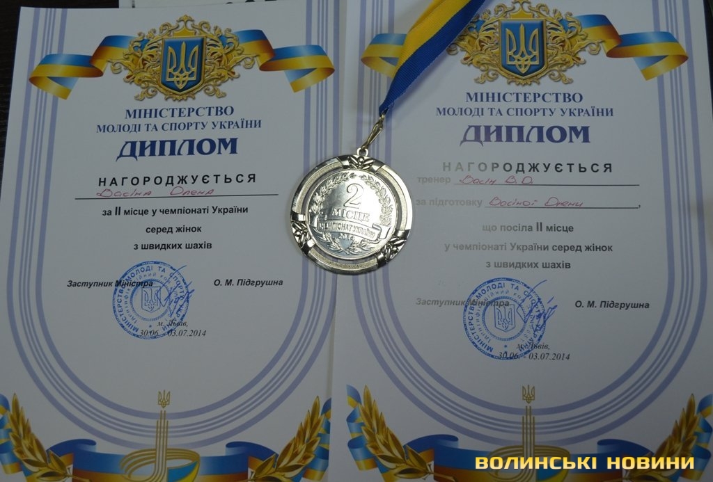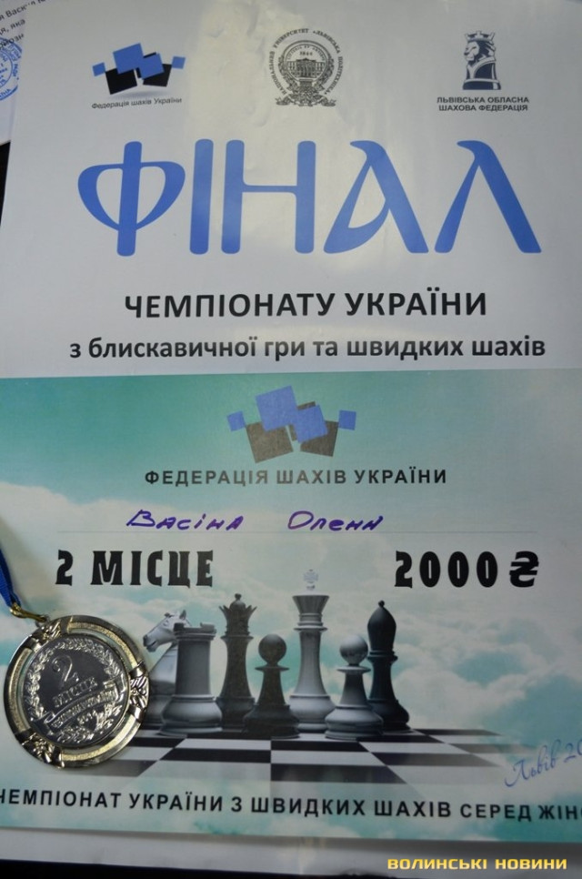 Лучанка Олена Васіна успішно виступила на чемпіонаті України з шахів, що завершився у Львові 13 липня. На турнірі серед жінок з швидких шахів Олена стала другою, показавши результат кращий, ніж у 29-ти суперниць і поступившись лише Інні Гапоненко, яка представляла Херсонську область.