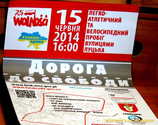 У Луцьку організовують спортивно-масовий захід «Дорога до свободи». Це вело- і легкоатлетичний пробіг вулицями обласного центру за участю українців й іноземних друзів.