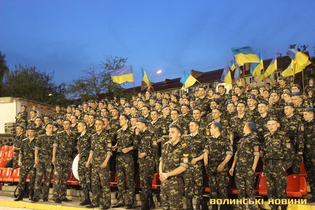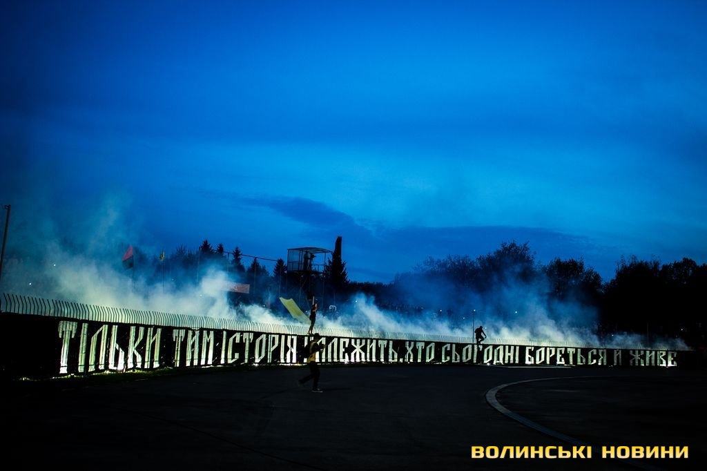 Сильно вразив присутніх і флешмоб волинян. Так, коли 60-метровий банер зі словами «тільким тим історія належить, хто сьогодні бореться й живе», стадіон в один голос почав скандувати «Слава Україні!» та «Герої не вмирають!».