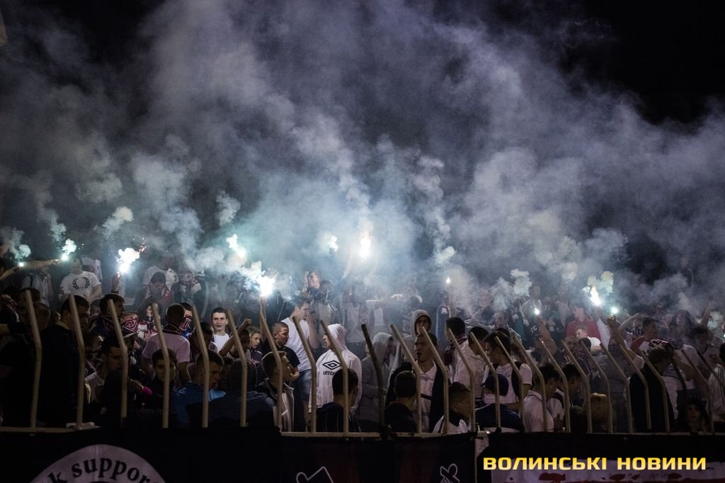 Як завжди, емоцій та настрою вболівальникам додали ультрас, які, традиційно, базувались на 17 секторі. Оскільки між фанатами клубів оголошено перемир’я, то вболівальників з Харкова привітали вигуками «Харків!», а у відповідь чули «Луцьк!». Перегукувались між секторами майже весь перший тайм.