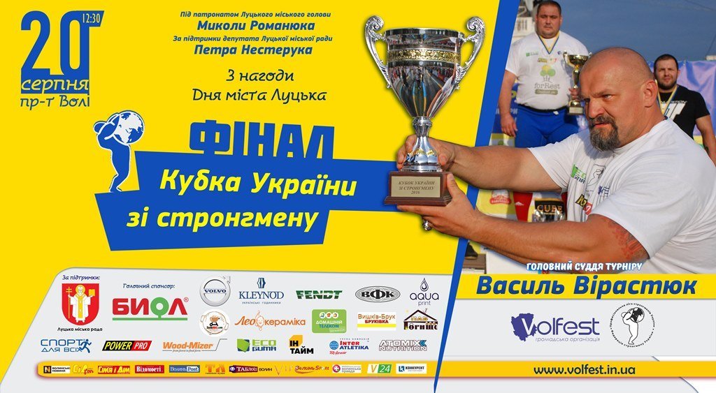 З нагоди Дня міста 20 серпня у Луцьку відбудеться «Фінал кубка України зі стронгмену». Змагання відбуватимуться навпроти головного корпусу СНУ імені Лесі Українки з 12:00 до 20:00