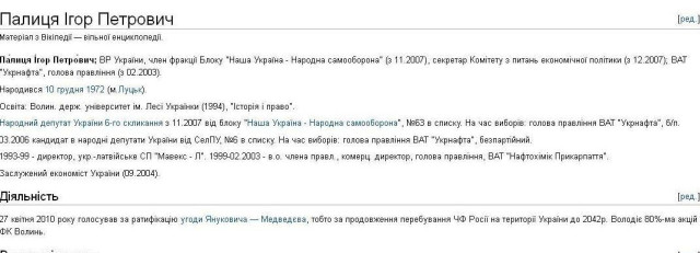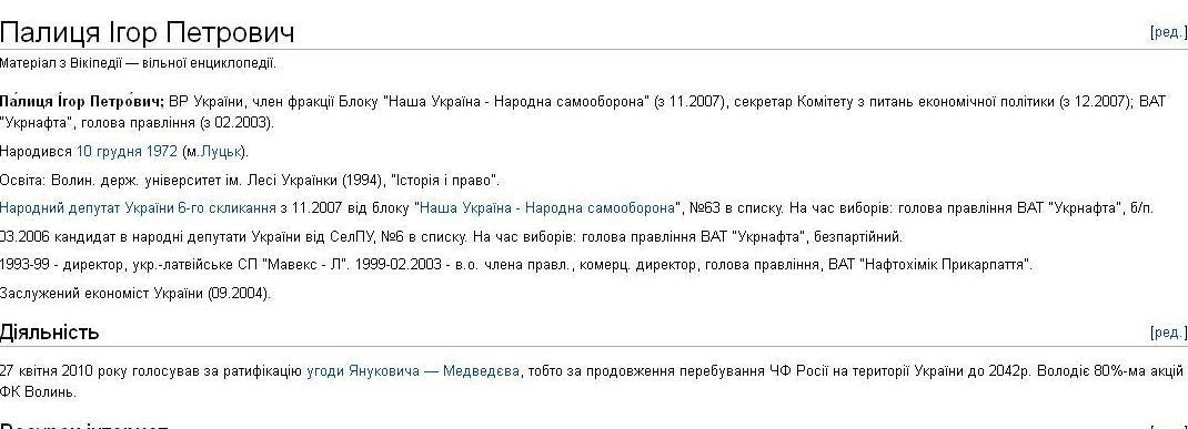 До речі, на сторінці «Вікіпедії» з'явилася інформація, що 80% акцій ФК «Волинь» володіє народний депутат і бізнесмен, уродженець Луцька Ігор Палиця.