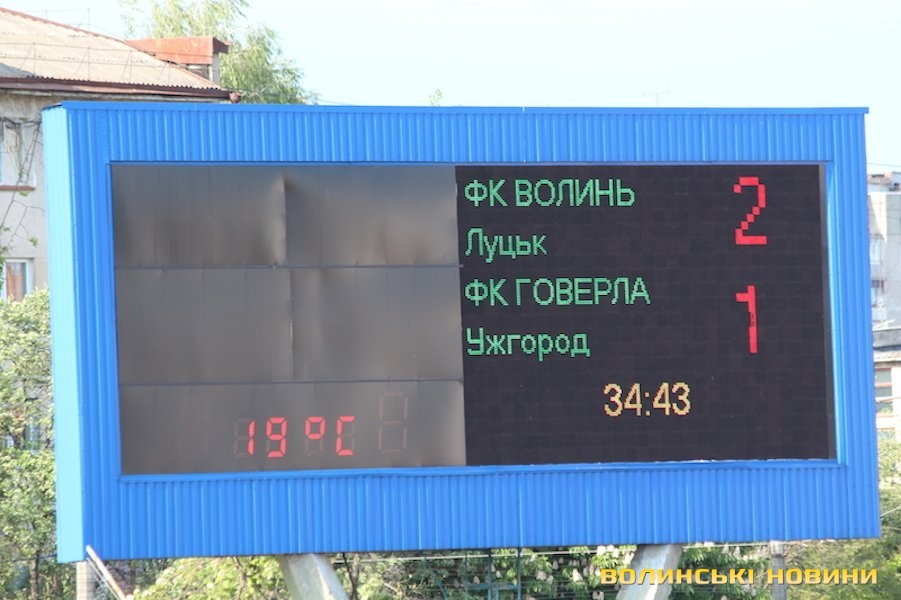 У Луцьку із рахунком 4:2 завершився матч 24-го туру української футбольної Прем'єр-ліги, в якому "Волинь" приймає на своєму полі ужгородську "Говерлу".