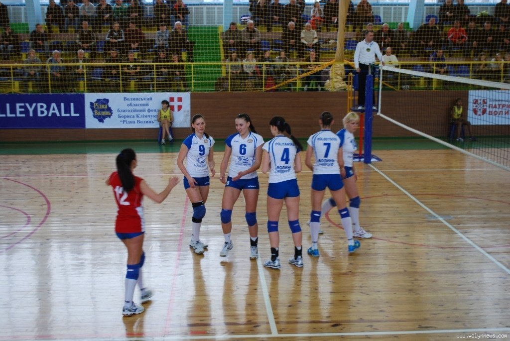 Наступного дня у нашої команди з перших хвилин вийшов «бійцівський склад»: Інна Молодцова, Юлія Молодцова, Олена Туркула, Ольга Андрусенко, Анна Довгополюк, Алла Політанська, Оксана Підгурська. Першу партію волинянки виграли 25:19. На другий сет Богуслав Галицький, як і в першій грі, випустив резерв: Анна Степанюк, Анна Галицька, Марина Кучко, Олена Лозюк, Тетяна Поліщук, у який додали Юлію Молодцову та Оксану Підгурську.