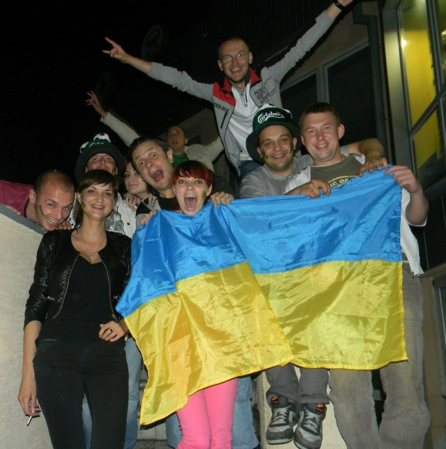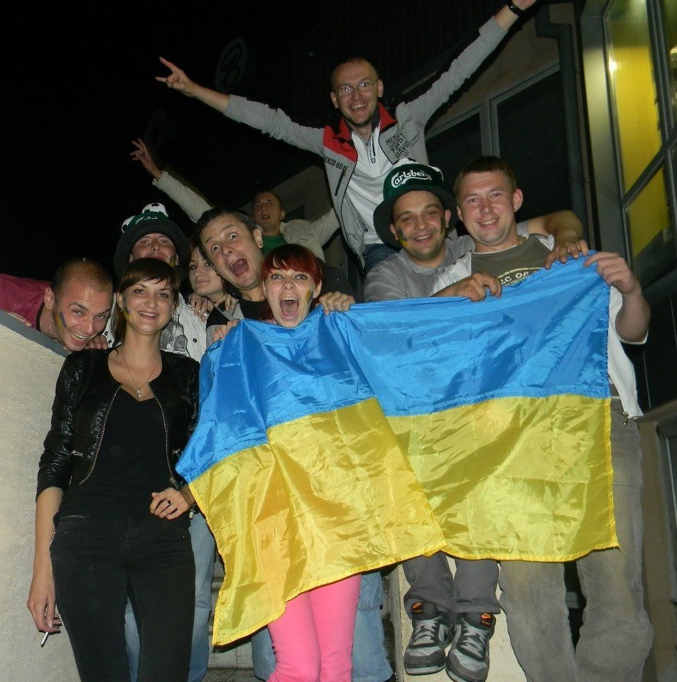 Так, понад 300 чоловік, які повиходили із закладів чи власних домівок, де спостерігали за грою, браталися, обіймалися, розмахували прапорами, по всьому місту розносились звуки клаксонів автівок, місто «божеволіло» і з гордістю скандувало: «Україна – чемпіон». Захоплений галас не згасав з годину.