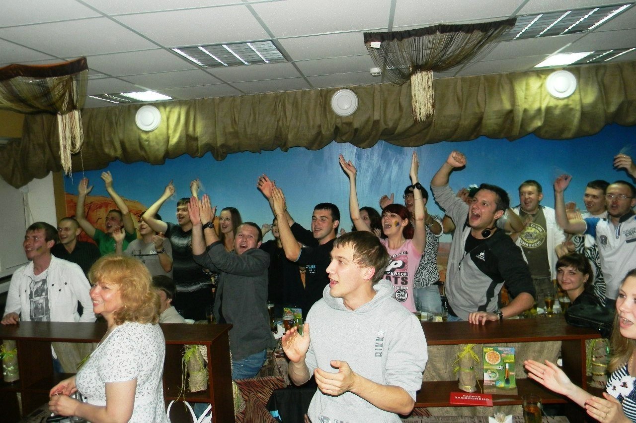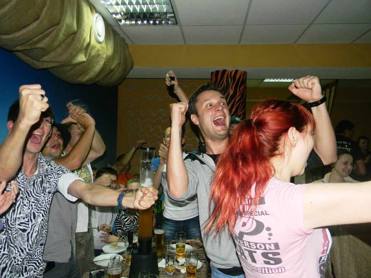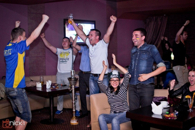 Зокрема, за грою напружено спостерігали у караоке-клубі «Sinatra», де щодня розігрують квитки на 1/4 фіналу в Київ.