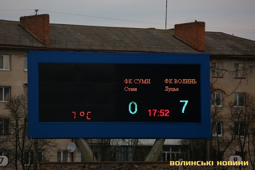 Поєдинок 20 туру Чемпіонату України з футболу серед команд Першої ліги луцька «Волинь» повинна була зіграти на виїзді у Сумах. Проте, зважаючи на неможливість сумчан забезпечити проведення поєдинку на стадіоні «Ювілейний», матч відбувся на луцькому «Авангарді».