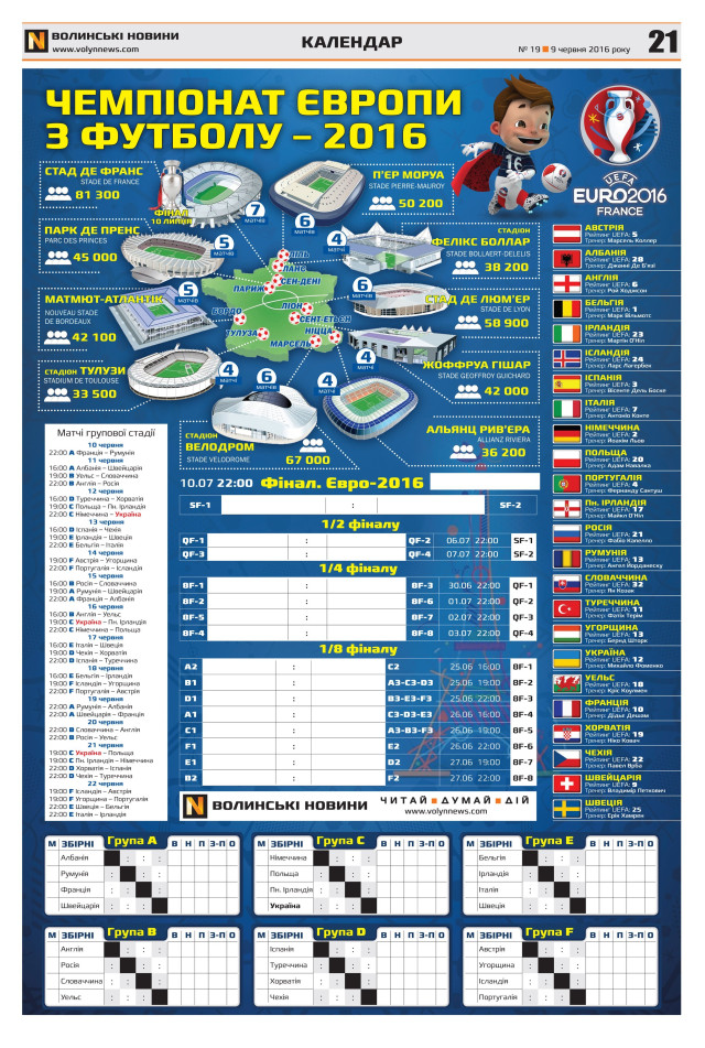 21 червня, Марсель: УКРАЇНА - Польща (19:00)