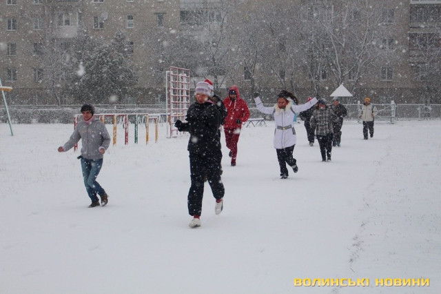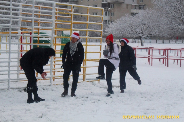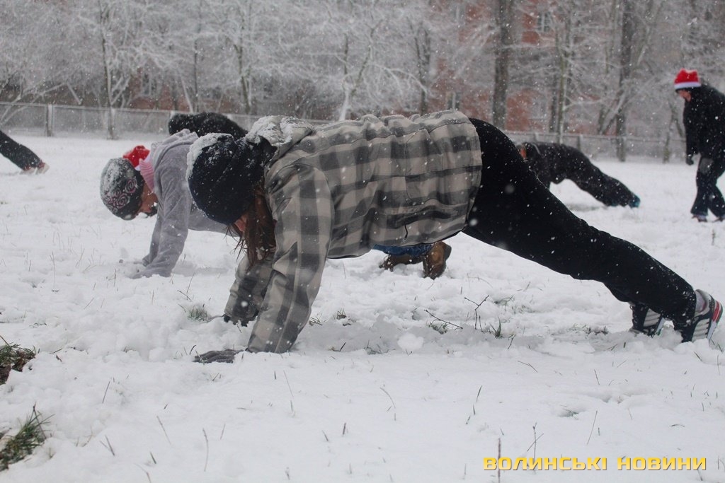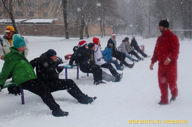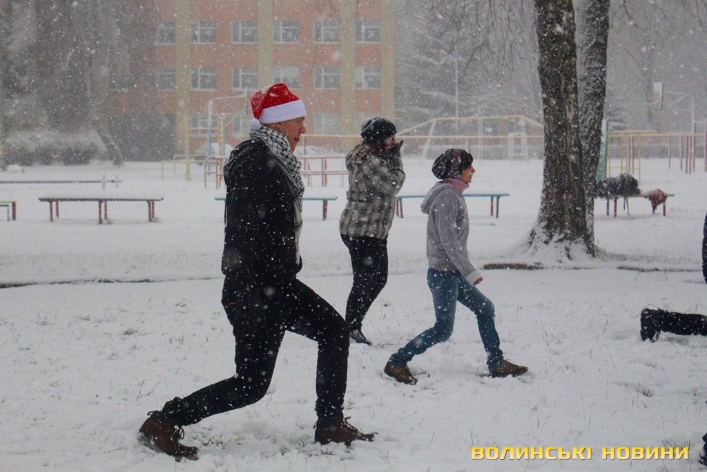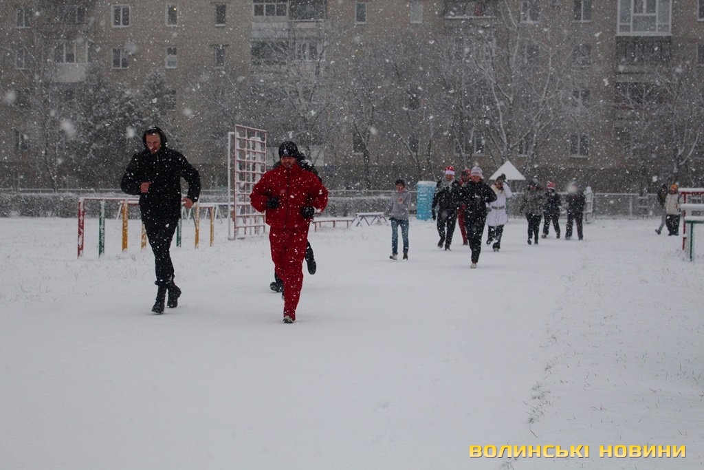 Капелюхи Санти, сніжки та вправи: як лучани спортивно прощалися з 2017 роком